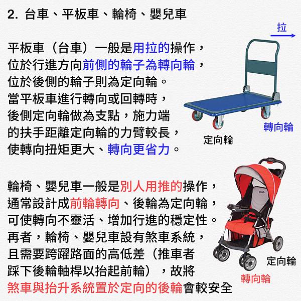手推車會比較容易轉向與操作唷