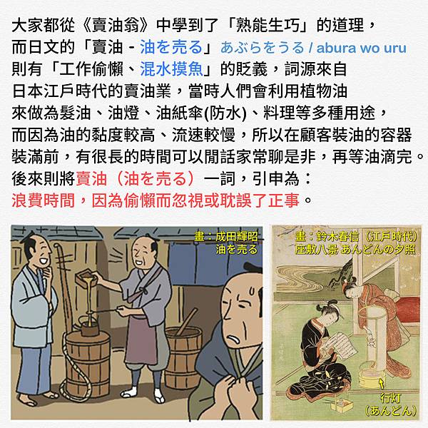 京都府乙訓郡大山崎町的 #離宮八幡宮 中,侍奉著一尊「油祖」,傳說是安平時代的神官,他發明了榨油器以及荏胡麻油的製造方法,因此此處被稱為日本的製油業發源之地,甚至在室町時代設立了「大山崎油座」,壟斷了全國的油專賣權,此制度於戰國時代逐漸沒落。