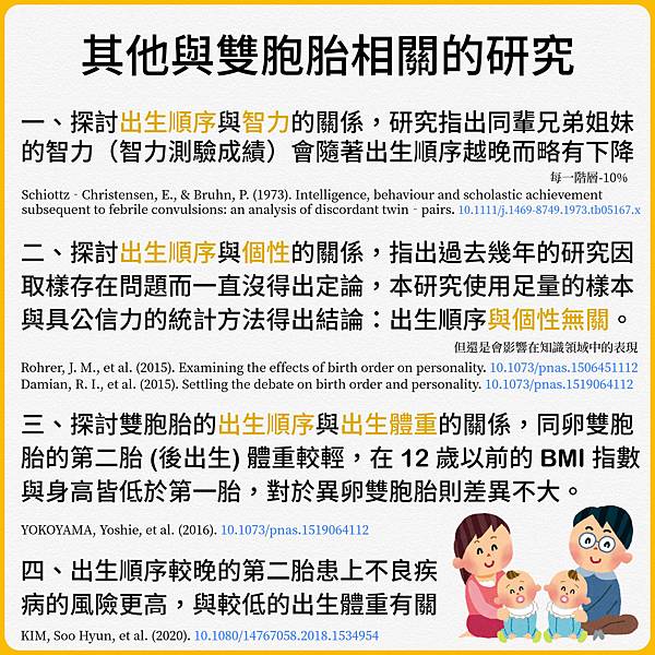 4⃣️後出生的是老大,因為希望老大會照顧小的,凡事先讓弟妹先