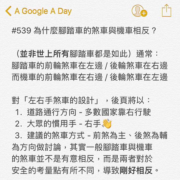 為什麼腳踏車的煞車與機車相反?
